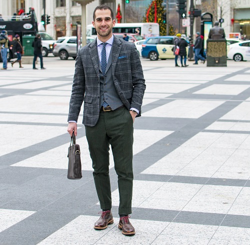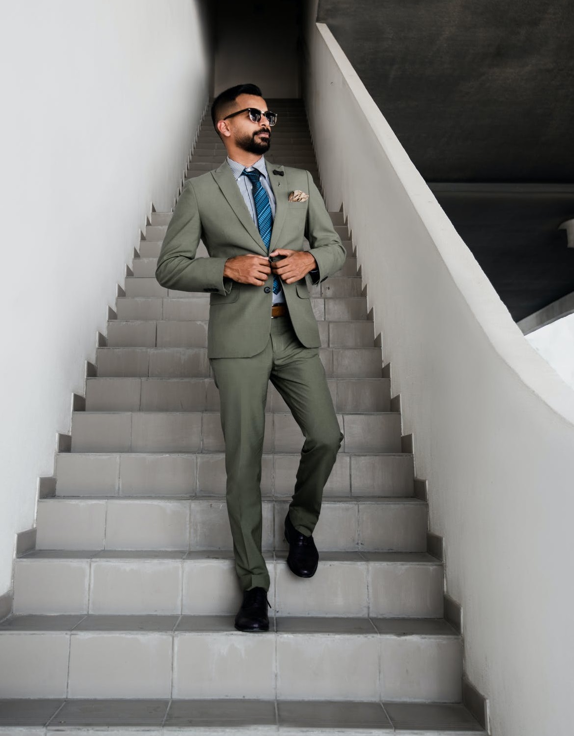 W przypadku niższych mężczyzn zawsze wybieraj marynarki z wysokim stanem, czyli z guzikami, które zwracają uwagę na wyższą część ciała. Noszenie guzika z wysokim stanem może również wydłużyć wygląd nóg.